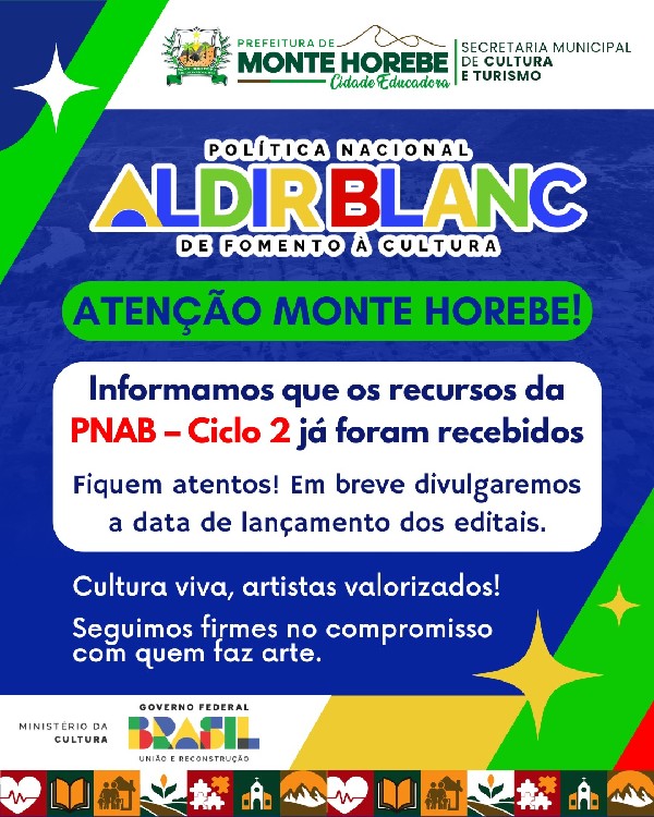#MonteHorebe #Cultura #PNAB #LeiAldirBlanc #ArteLocal #CidadeEducadora #ApoioÀCultura