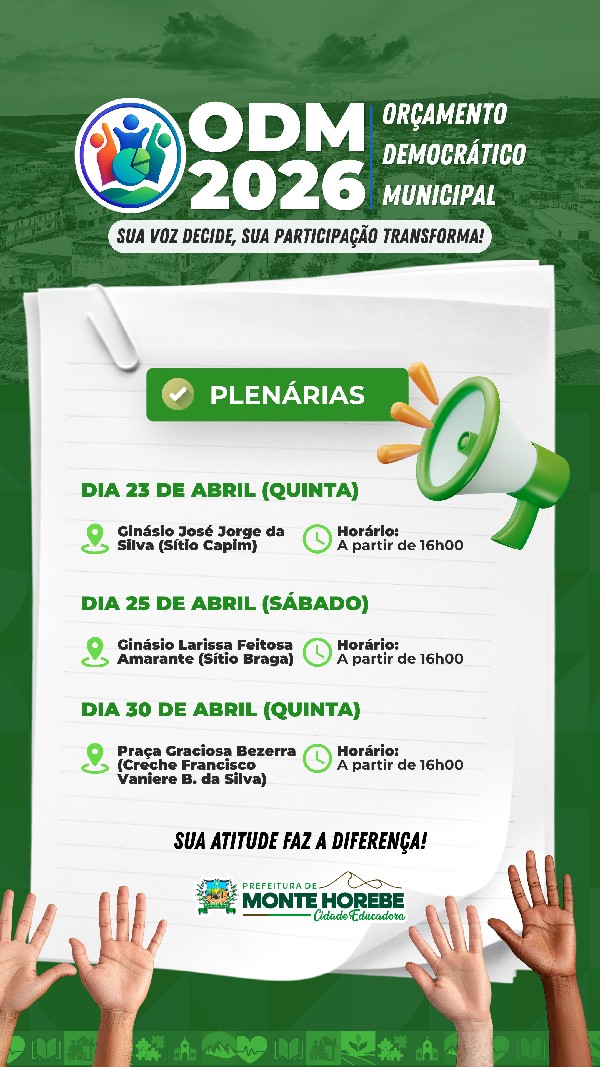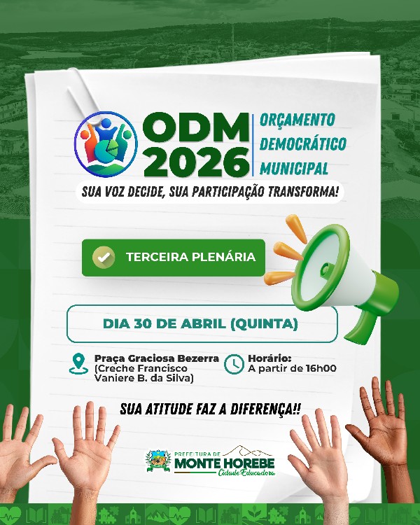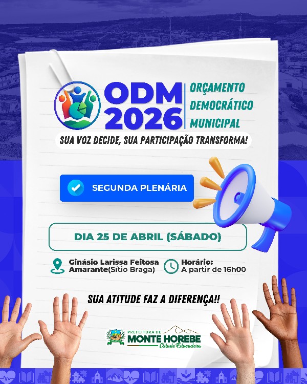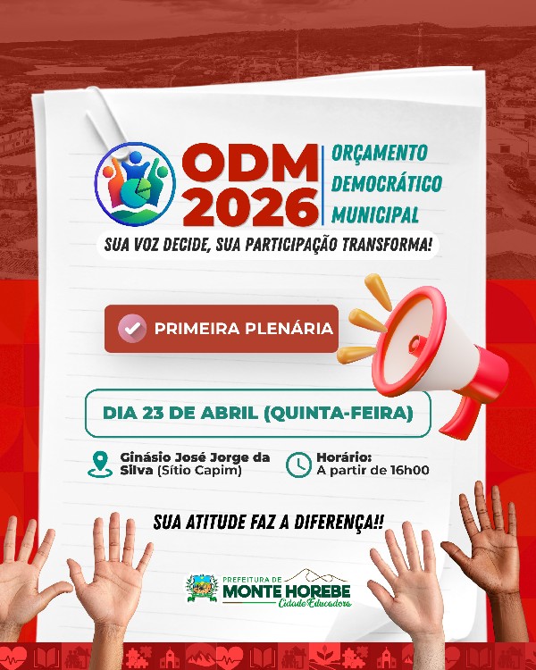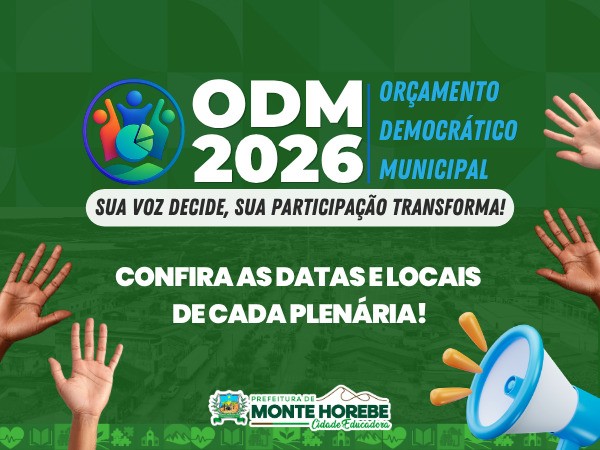 ODM 2026: Prefeitura de Monte Horebe divulga Cronograma de Plenárias do Orçamento Democrático Municipal